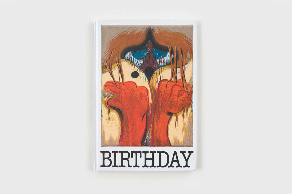 This unique series in an edition of twenty, was generated using hand-cut stencils to apply layers of translucent and opaque acrylic spray paint atop pink offset prints of Birthday Series #25.