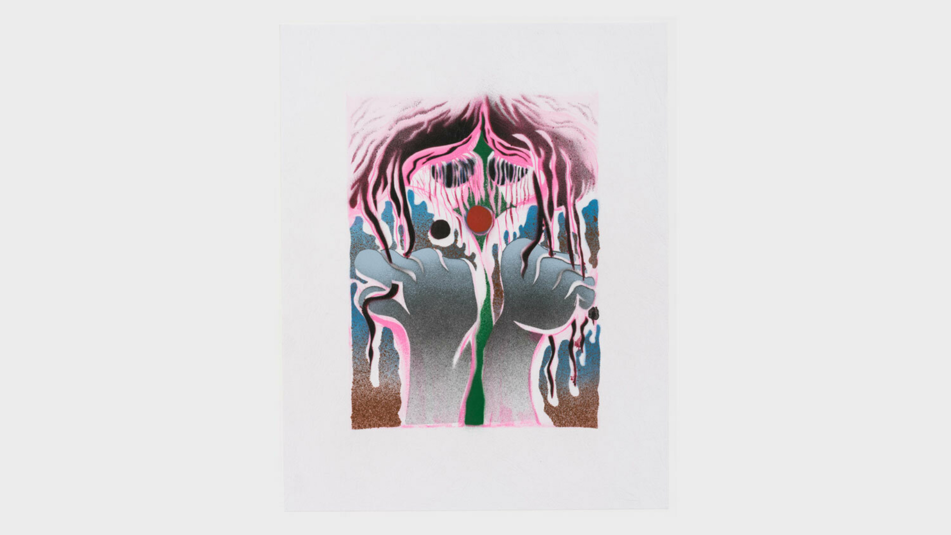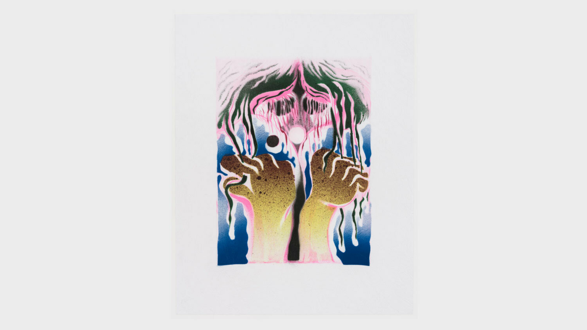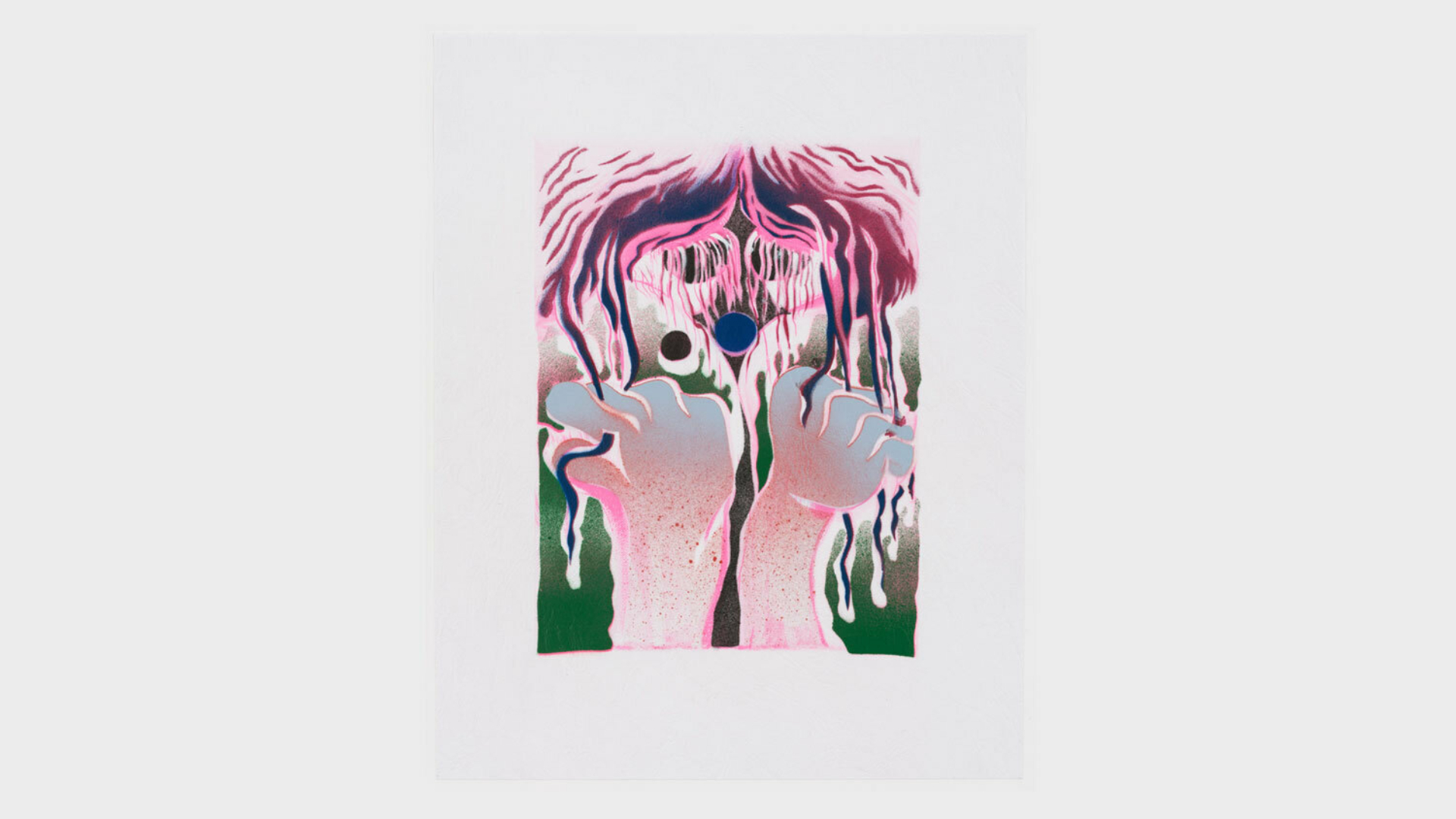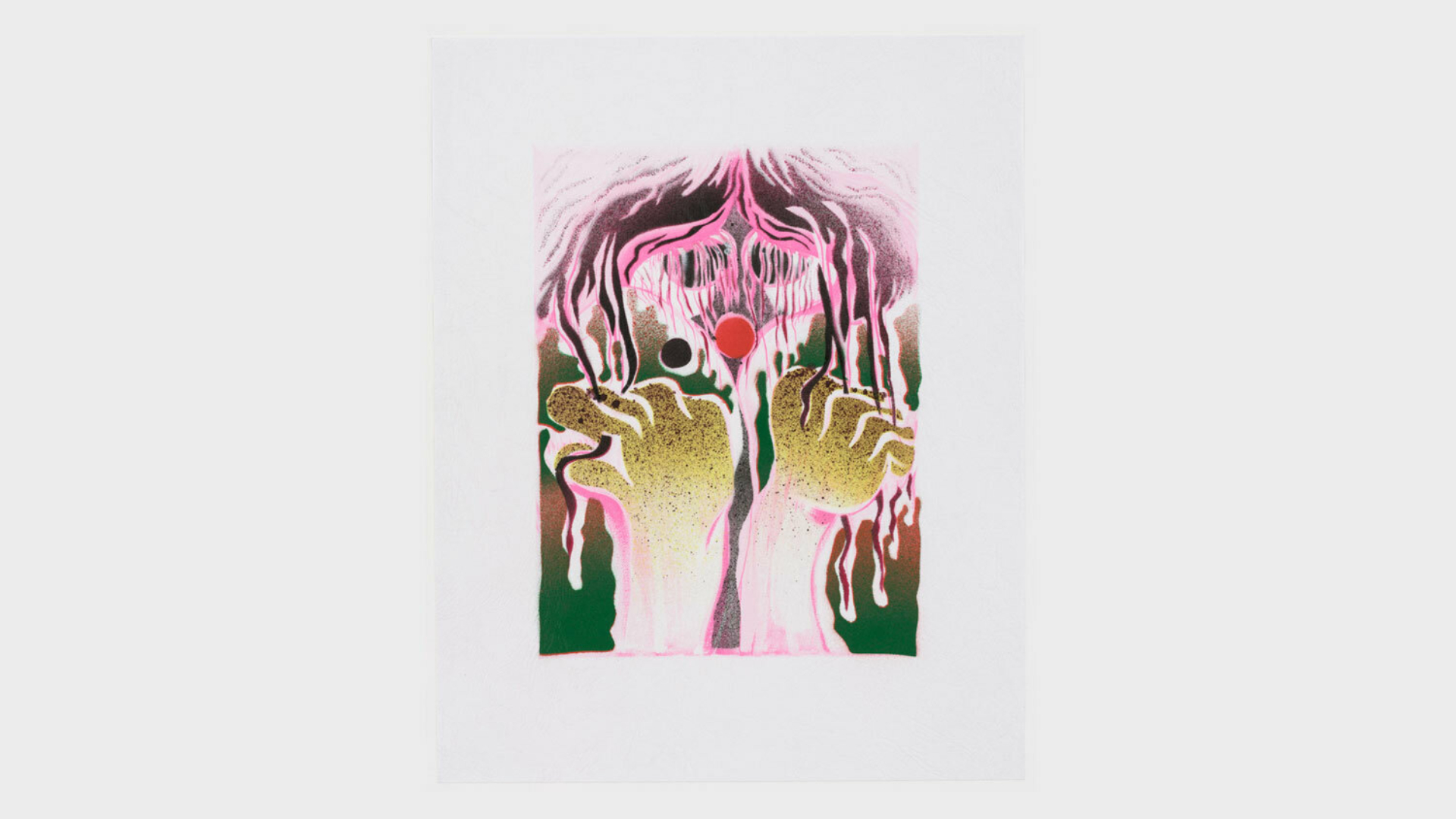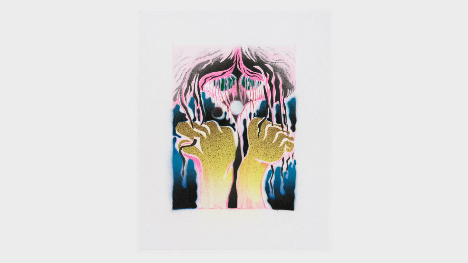 Acrylic spray paint and offset printing on 130 gsm Geltex textured paper / Paper size: 299 × 378 mm / Image size: 197 × 263 mm / Signed, dated, and numbered on the back / Edition of 20, each unique