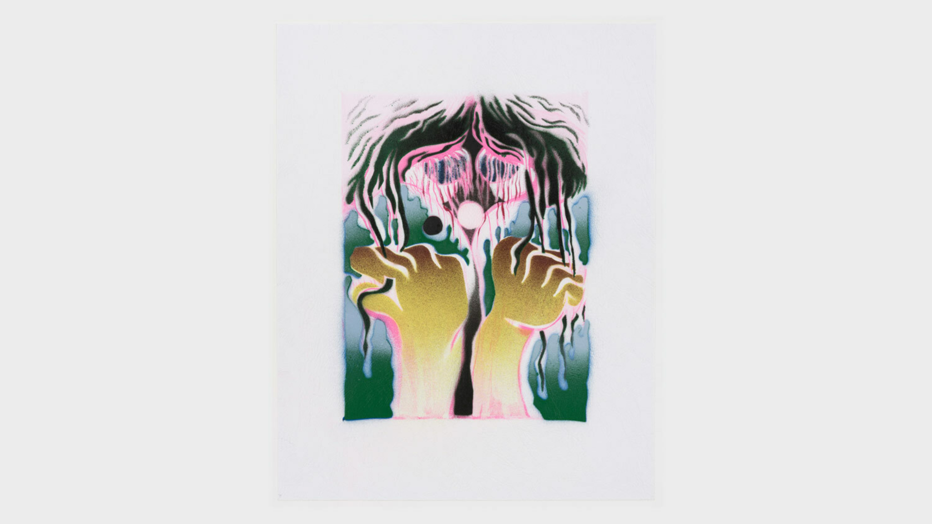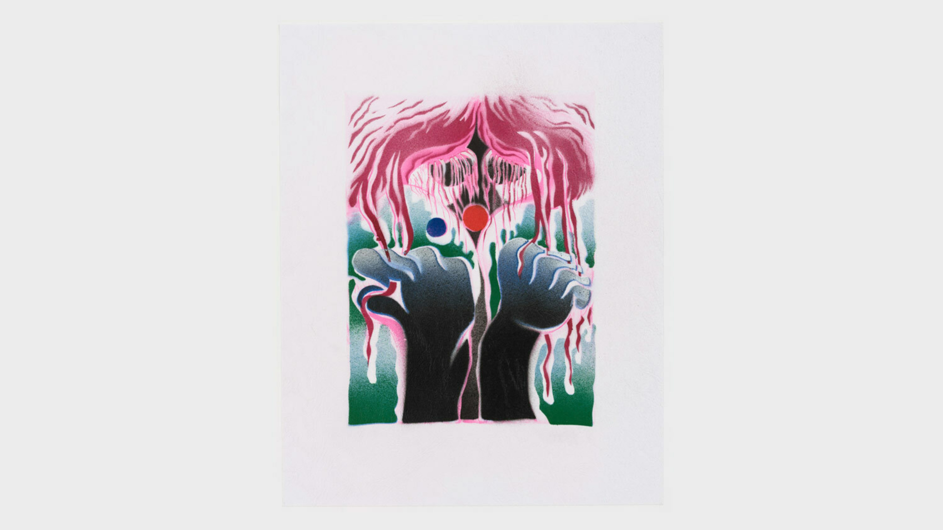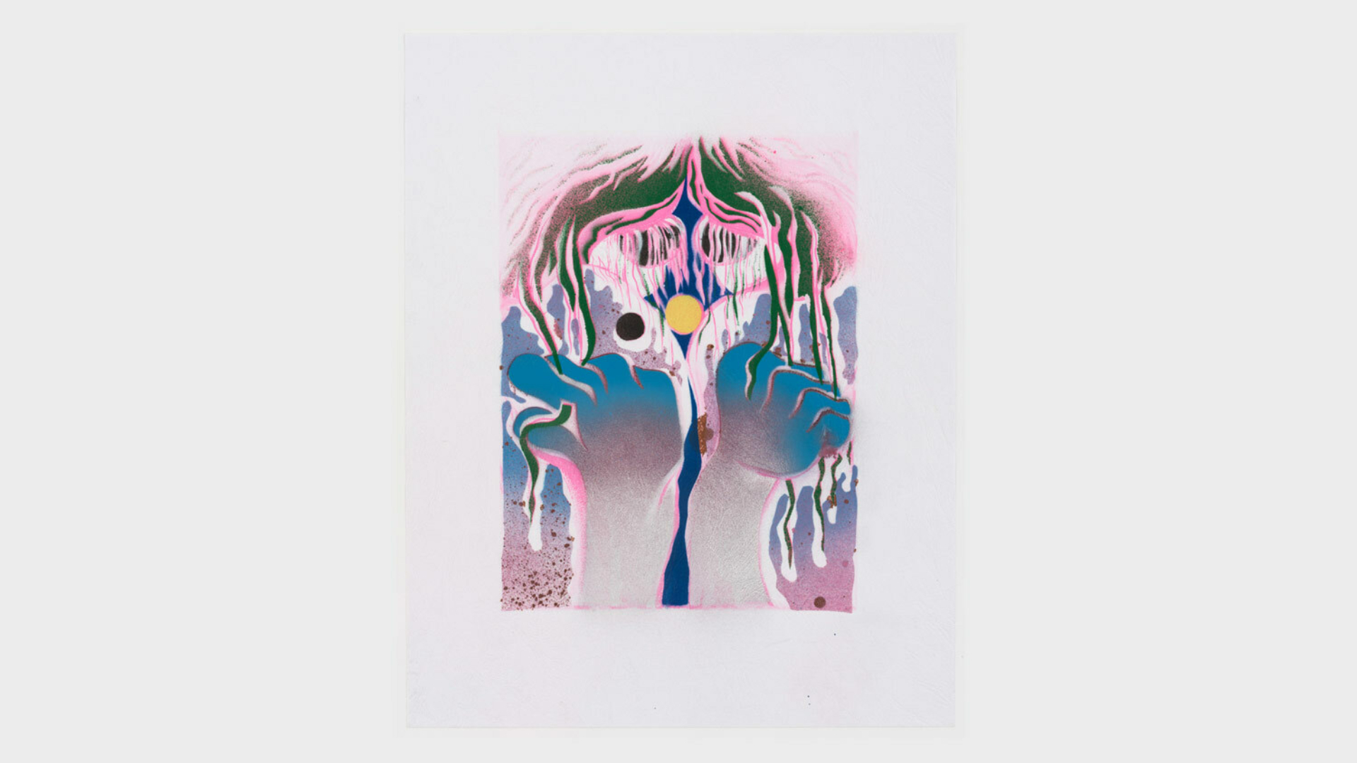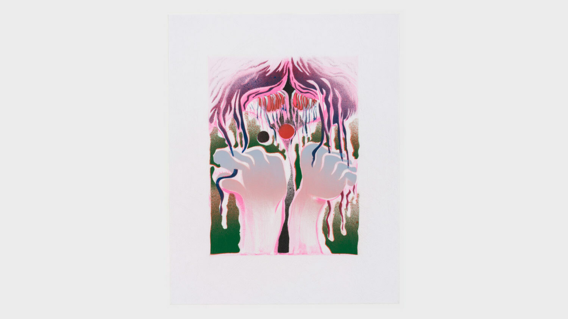 Acrylic spray paint and offset printing on 130 gsm Geltex textured paper / Paper size: 299 × 378 mm / Image size: 197 × 263 mm / Signed, dated, and numbered on the back / Edition of 20, each unique