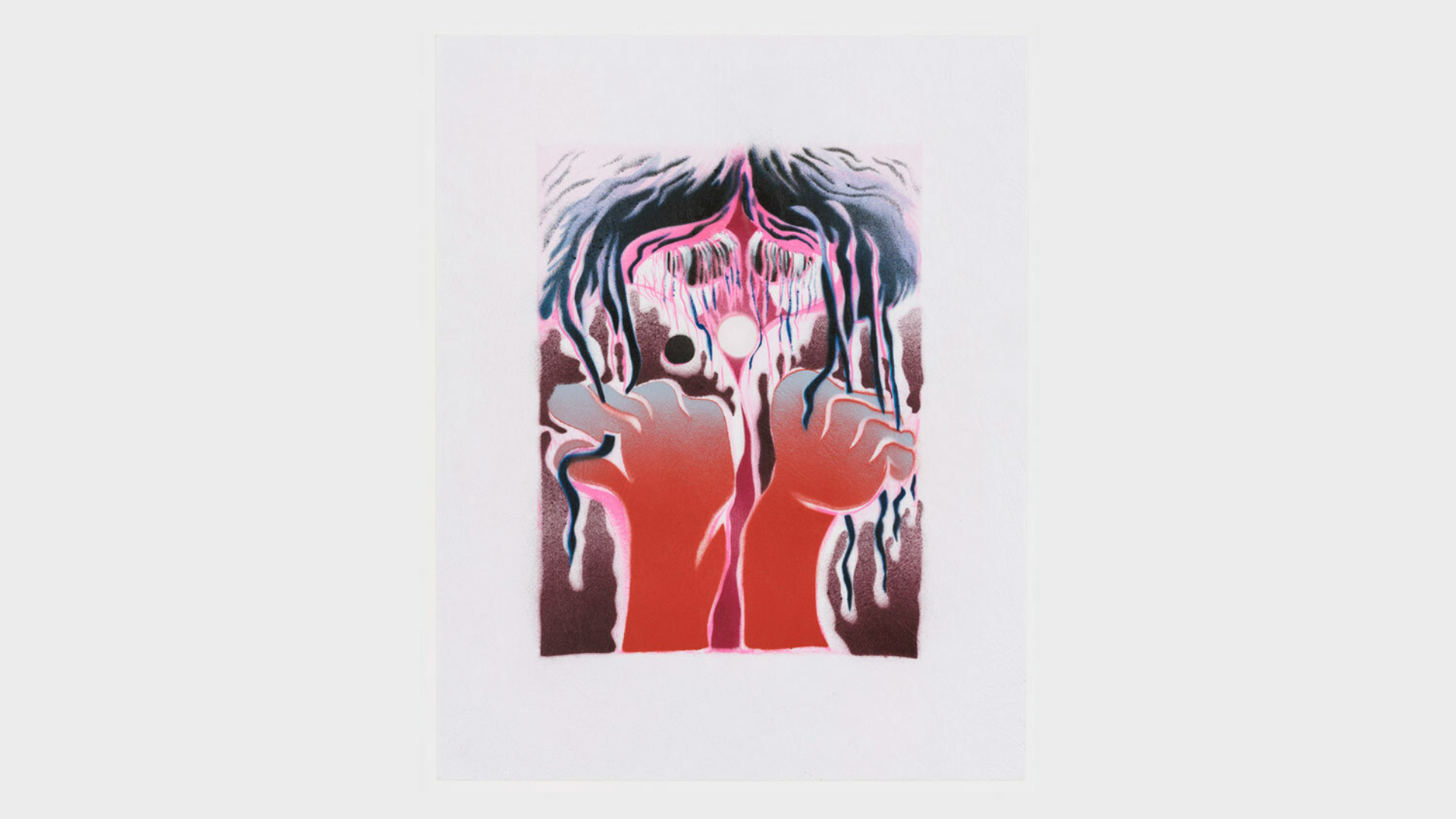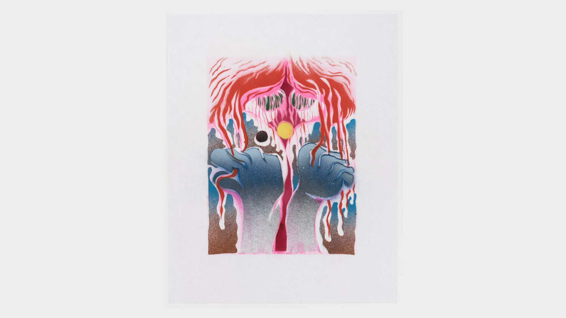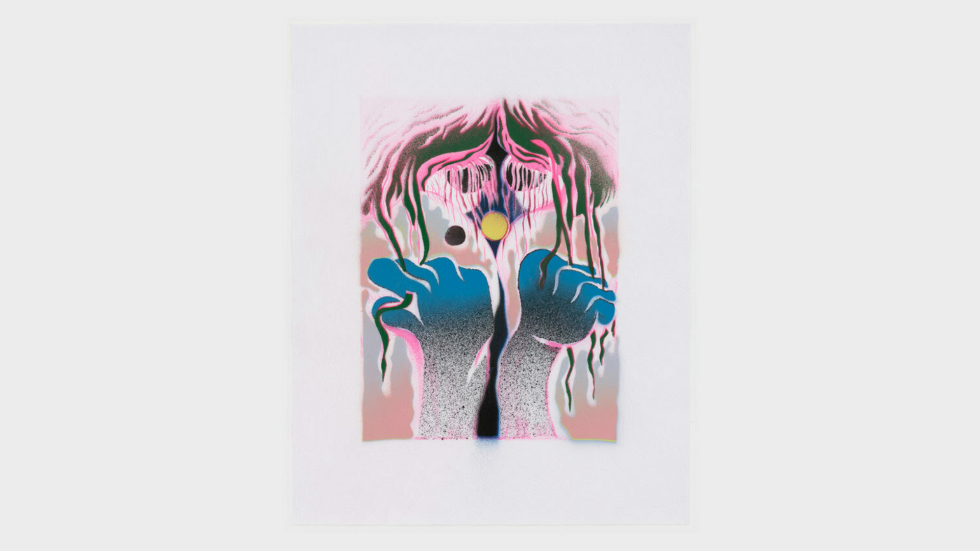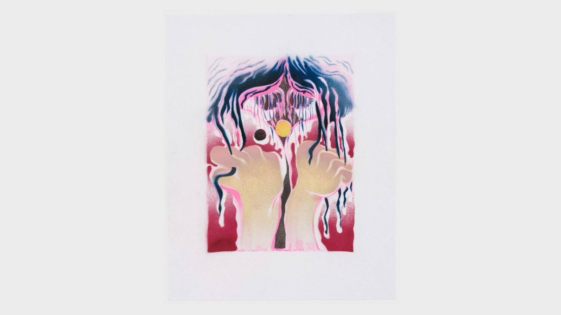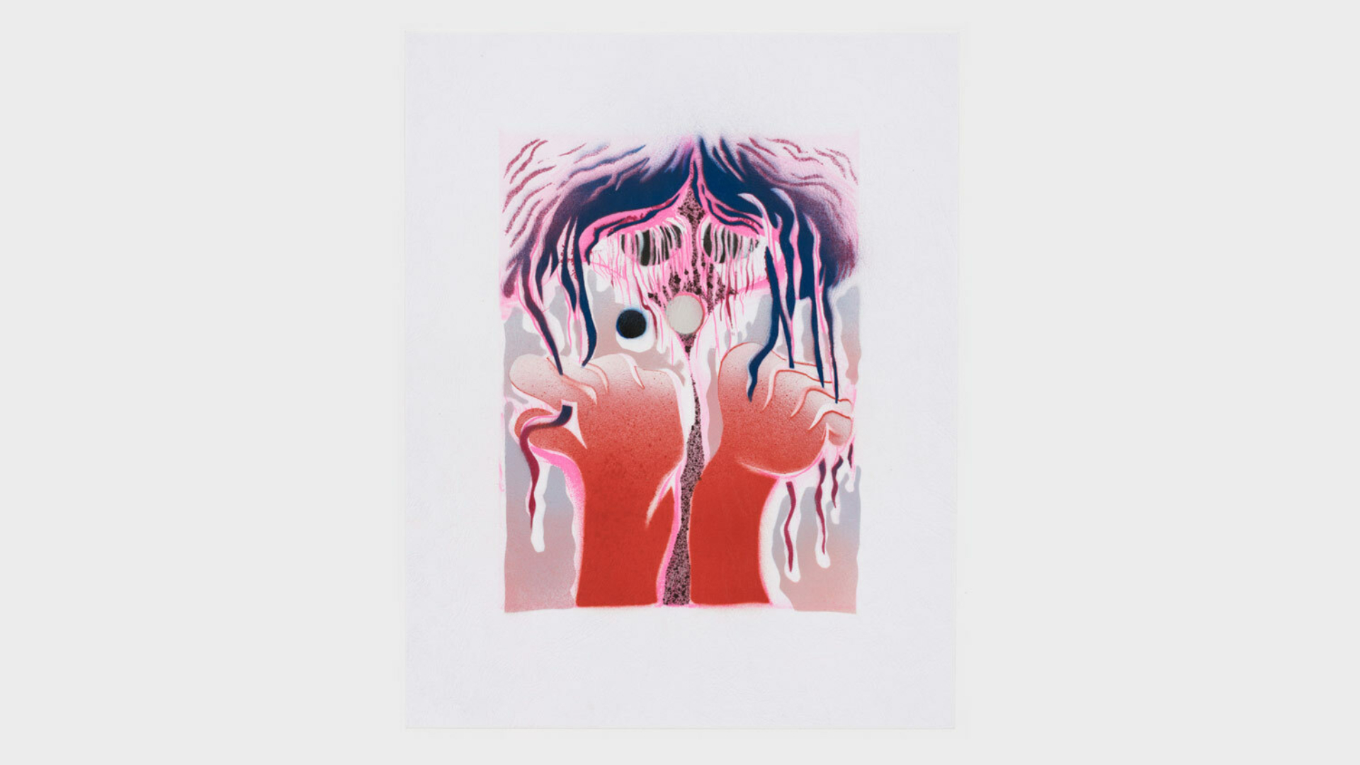 Acrylic spray paint and offset printing on 130 gsm Geltex textured paper / Paper size: 299 × 378 mm / Image size: 197 × 263 mm / Signed, dated, and numbered on the back / Edition of 20, each unique