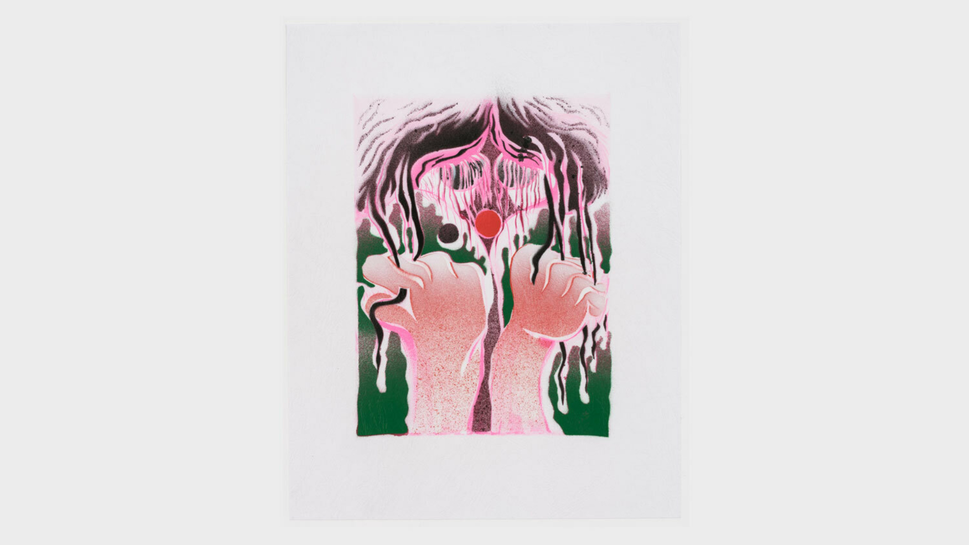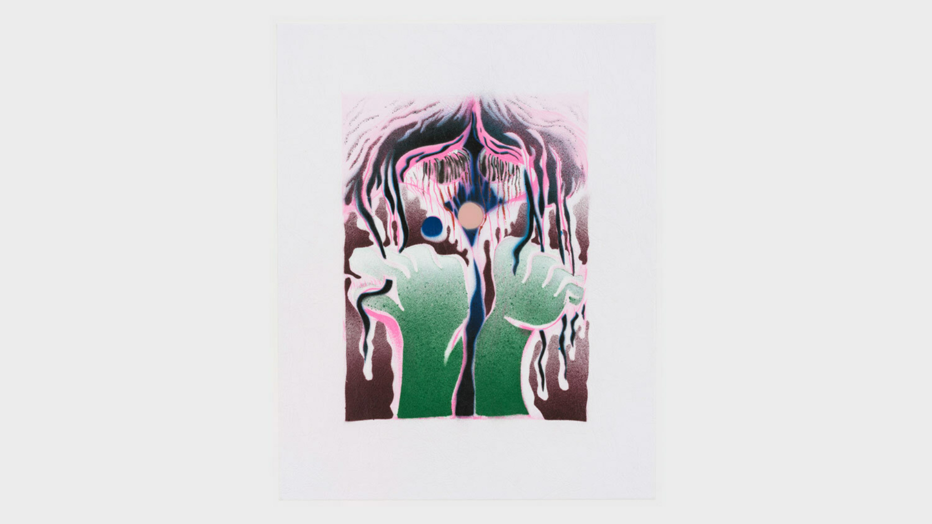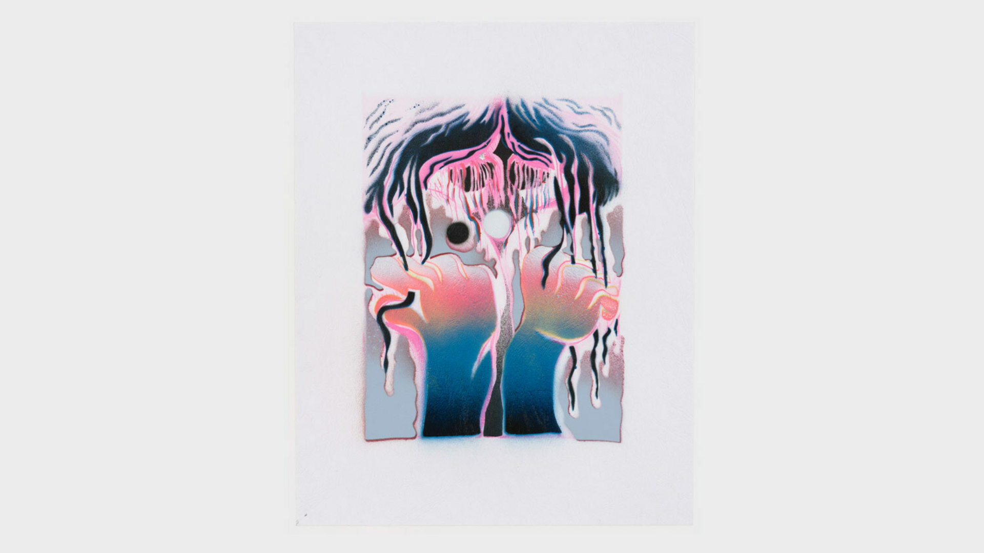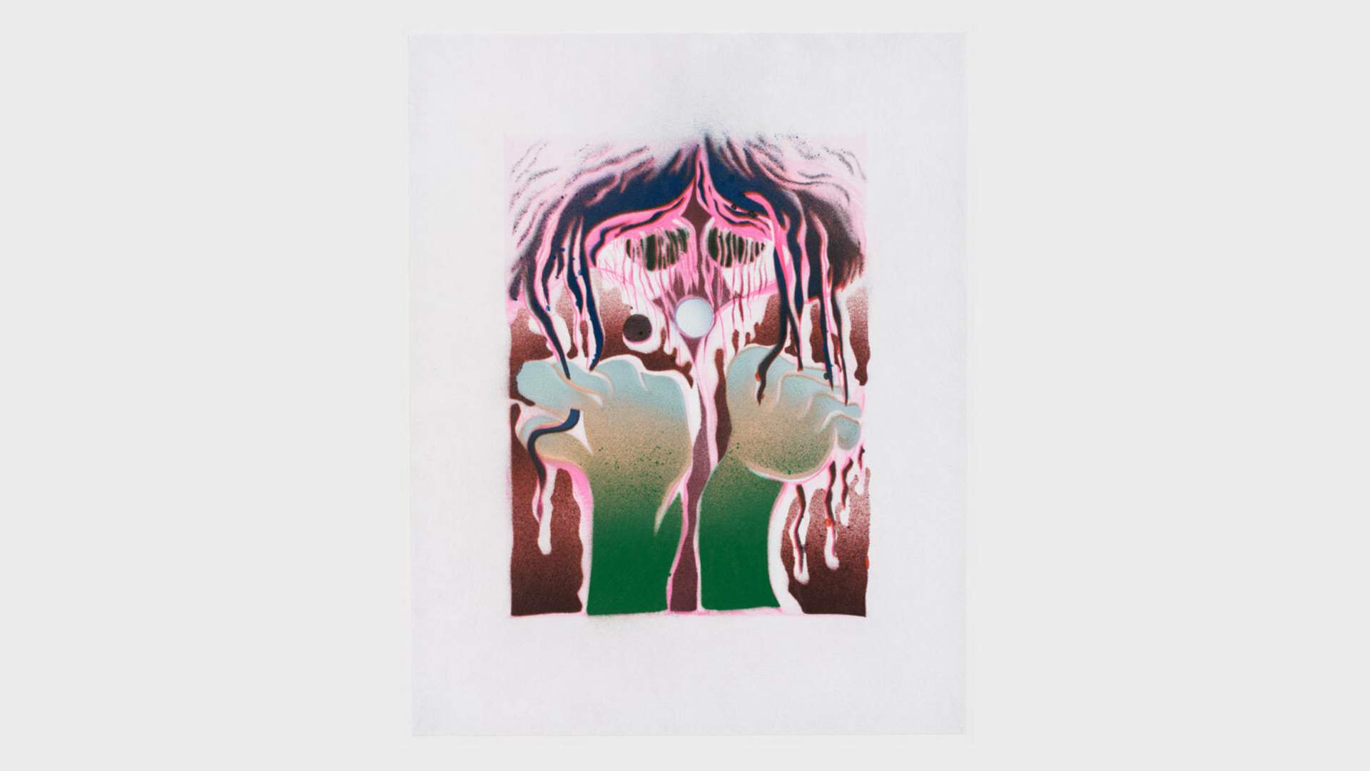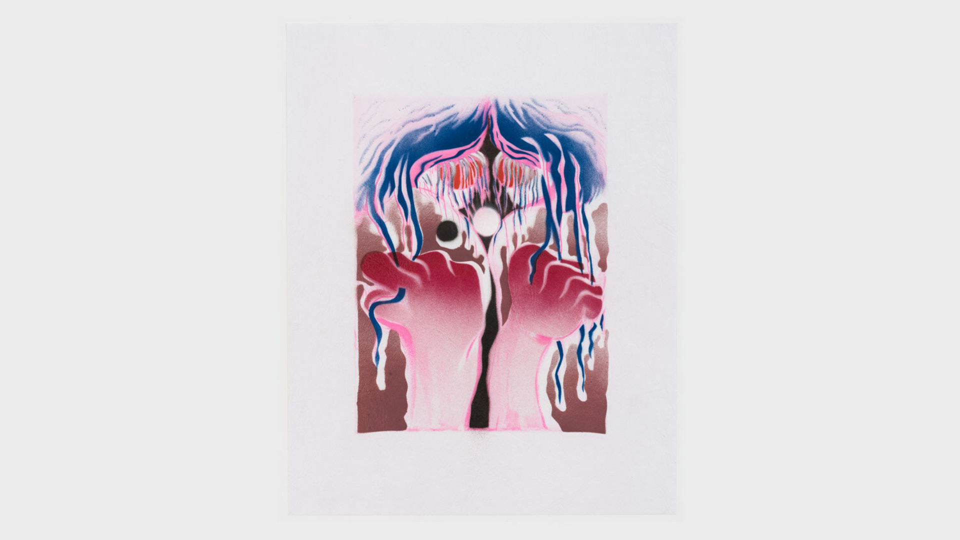 Acrylic spray paint and offset printing on 130 gsm Geltex textured paper / Paper size: 299 × 378 mm / Image size: 197 × 263 mm / Signed, dated, and numbered on the back / Edition of 20, each unique